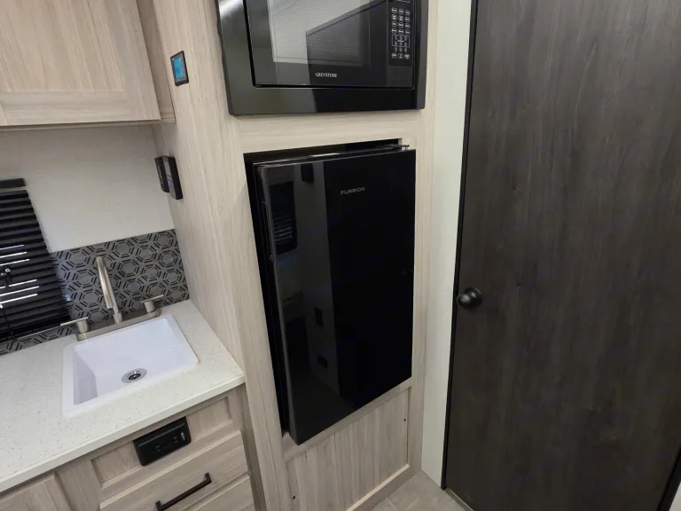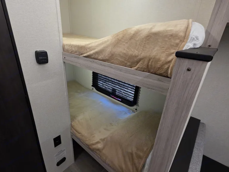 Super light weight (3400 pounds) towable with most small trucks and SUVs. Sleeps 5 with a queen bed in front, twin bunk beds in back, and the dinette turns into a comfortable sleeping area. This trailer is equipped with an outdoor LED strip, a 42 gallon fresh water tank, a 30 pound propane bottle to provide gas for the tankless water heater to give you hot water and keep the built in heater working so the trailer is toasty during the cold months. Has a 700 watt solar system, 24 Volt 100ah lithium battery, and a 3000 watt inverter.Amenities include for use are all bed linens, cutlery, cups, mugs, plates, bowls, pots, and pans, unlimited generator use includedThis RV is amazing for a weekend beach trip, lake getaway or spend some time in the in the the forest for an affordable cost! Weight distribution hitch included for use with rental.NO Awning Access!
