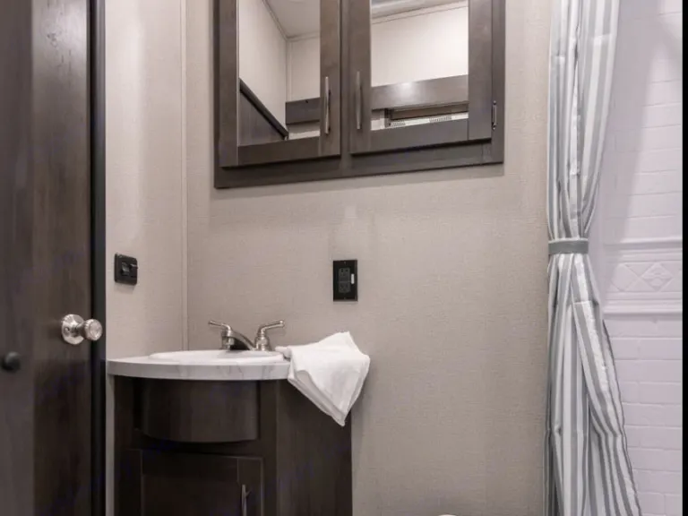 Why You’ll Love It Here:Rear living room with plush seating and a large window that frames the sunrise (or sunset — your choice).Fully equipped kitchen in the heart of the camper — brew coffee while chatting with friends in the living area.Private bedroom with a queen bed and soft bedding, so you wake up refreshed and ready for adventure.Outdoor living made easy with a power awning, patio lighting, and chairs for stargazing.Climate control with A/C and heat — because comfort matters no matter the season.Make It Memorable: