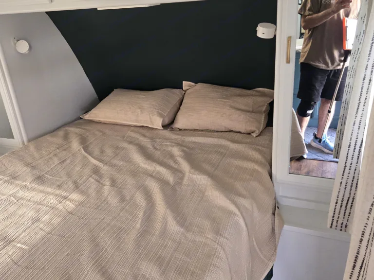 Check out this pet friendly mobile home!My wife and I painted this to make it feel like home. This camper comes with the basics for glamping. Fridge, AC, Heat, bed, reclining sofa, bathroom, hot water and more. We will provide the basics to get you set up, water and sewer hookups, electrical power surge and extension cord. We do ask that guests bring their own linens, towels, pillows, cooking utensils, pots and pans.Basics can be provided for an extra fee. We can offer starlink and or a generator for an extra cost.What's includedWill provide the basics to get you set up, water and sewer hookups, electrical power surge and extension cord.Other things to notePlease do not smoke tobacco in this camper.