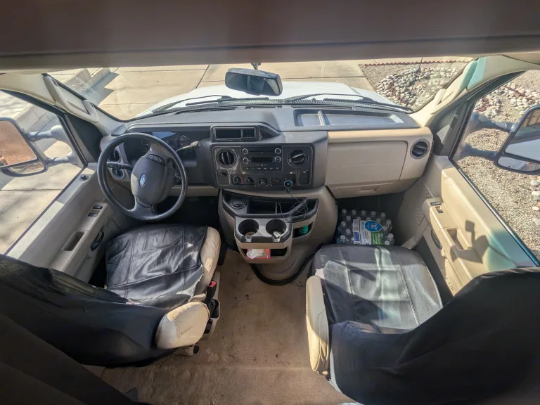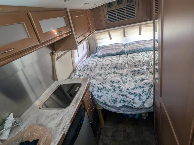 Comfortable, luxurious, and secure adventures come with this RV. With genuine leather seats, hand-crafted wooden trim, and high-end furnishings, you'll forget you're not in a 5 star hotel. This van fits in any parking space a 20 ft truck would fit in, has a backup camera, and feels like driving a regular truck or minivan. Camp at National parks, forests, or even at Cracker Barrel across the country! The gas mileage is much more efficient than any large class-C RV and there's no need to tow a vehicle behind it. Amenities include: king-sized bed with memory foam topper for a great night's sleep, dinette table, propane camping stove for cooking outside, small fridge and freezer, tv, players, 30 gallons of fresh hot or cold water (Running water Only available May 15 - October 15. DRY camping only from October 15 - May 15 and in freezing weather! No running water in winter but can still use toilet with pink RV liquid), kitchen and bathroom sinks, indoor and outdoor showers, toilet, closet, and more. All of this is powered by simply driving around to keep the battery charged! (Microwave, A/C, and electrical outlets powered by generator and may not always be available as it's an older RV) If you have any additional questions Please don't hesitate to ask any questions through the app.***Please note that RV is 9 ft tall. It will NOT fit in most parking garages or drive thru restaurants. Always look at clearance height before attempting to go through entrances or under low hanging branches etc. We look forward to hosting your next adventure! What's includedPerfect for solo travelers and couples.Includes: