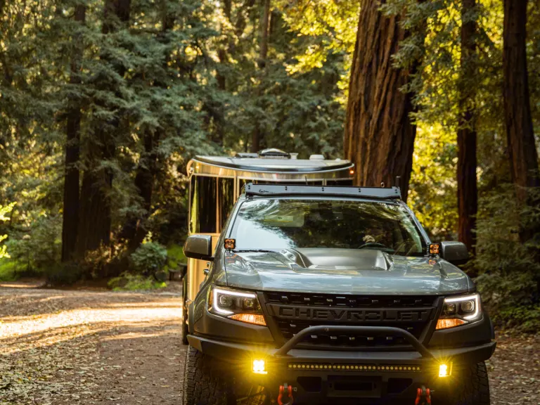 Welcome to the Caravan.Looking for the ultimate adventure on wheels? Look no further than our brand new Airstream Basecamp REI Edition, paired with a fully-outfitted Chevy Colorado ZR2. This dynamic duo is the perfect way to experience the great outdoors in style and comfort.The Chevy Colorado ZR2 is equipped with everything you need for off-road adventures, including a pop-up king-size tent, 270-degree awning, off-road lights, and off-road suspension. With plenty of room to haul all your gear, you can take on any terrain with ease.The Airstream Basecamp REI Edition is equally impressive, with a shower, bathroom, fresh water, water filtration, indoor lounge, and kitchen. Solar panels paired with strong lithium batteries ensure you can go off the grid for as long as you'd like, without sacrificing any of the comforts of home.Together The Caravan can sleep 4 adults. The basecamp has a spacious bed area that doubles as lounge while the zr2 sleeps another 2 with a xl roofnest pop up tent that will give you a Birds Eye view of camp while you sleep over 6’ up in the air. The Zr2 will also offer plenty of room for the whole party to road-trip together in one vehicle so you won’t have to worry about bringing an extra car.Speaking of having an extra set of wheels. The best feature of renting this duo is the flexibility it offers. Unlike a large rv or sprinter you can arrive to your destination, unhitch the basecamp, then be free to explore with the zr2. Whether you’re going up a narrow dirt trail or grabbing supplies in town, nothing beats having the luxury of being able to leave your camp nice and set for when you come back.Whether you're planning a weekend getaway or a cross-country adventure, this Airstream and Chevy combo is sure to provide an unforgettable experience. Book now and get ready to hit the road in style!What's included• 2 rei co-op chairs