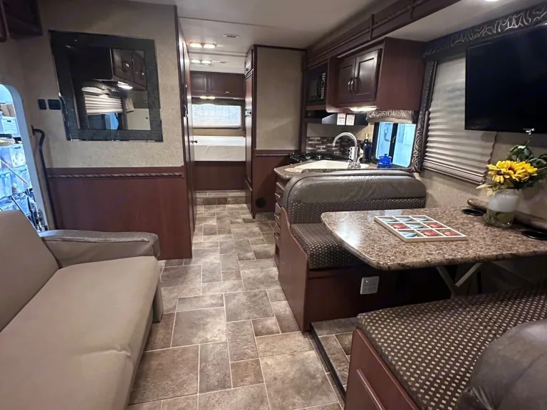 Very nice class c motor home, plenty of room, outdoor entertainment, generator, electrical , water, and sewage hook ups and on board propane. Perfect for family. 2 seat belts at kitchen table and 2 seat belts in van seats. Queen bed, over cab bed , table turns into a bed and fold out couch can be a bed. What's included• out door grill, full propane,