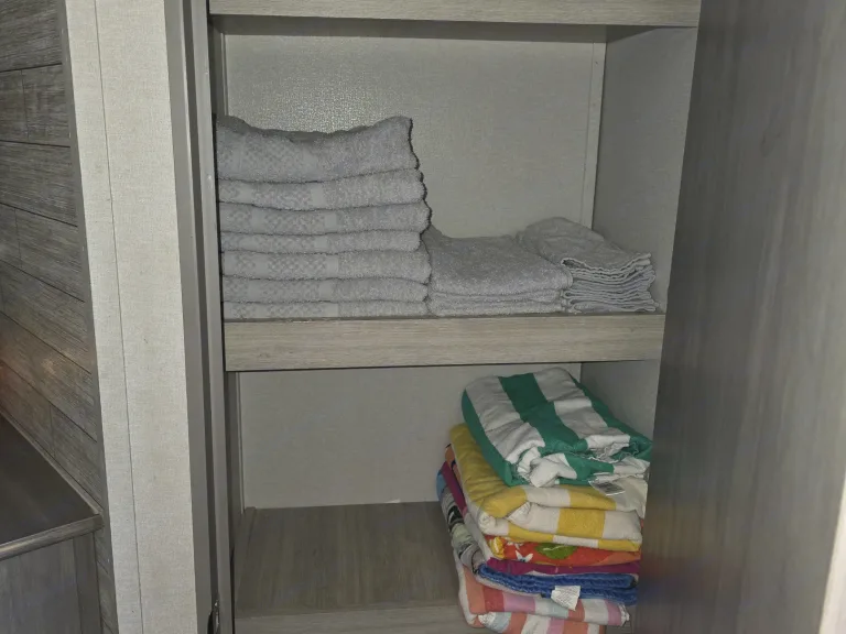What's includedSleeps up to 8 – Queen master bedroom, private bunkhouse with queen bunks & convertible dinette & jackknife sofa. One slode out on the driver side. Full Kitchen – Refrigerator, stove, oven, microwave, sink, and all the basic cookware & utensils. Entertainment Ready –indoor/outdoor speakers, Bluetooth stereo. Outdoor Kitchen & Awning –fridge and griddle. Full Bathroom –Shower, toilet, and vanity with plenty of hot water. Comfort Climate Control –Air conditioning & furnace for all-season camping. Other things to noteNo smoking 🚭