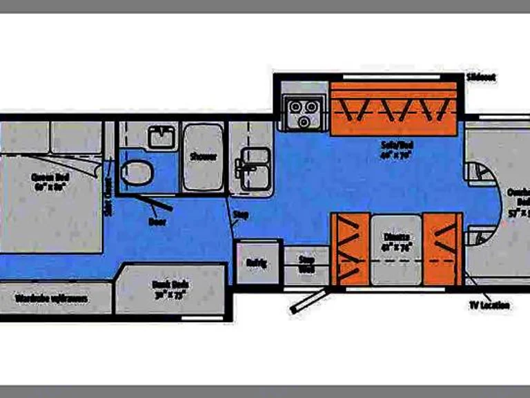 • Easily sleeps 6 with 2 queens and a set of bunks. Additional sleeping on couch and dinette for up to 10 (with smaller children of course!)