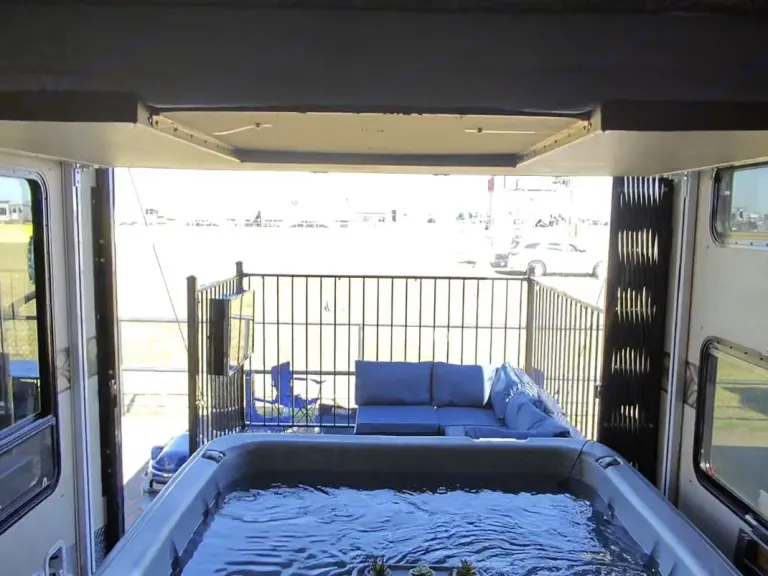 Absolutely! With the optional hot tub package, my RV camper comes with a 4-person hot tub, cleaned, sanitized, and refilled with fresh water after each use, a fenced-in porch with a comfortable couch and awning, plus an outdoor seating area complete with a rug, fire pit, and six chairs! It’s the perfect setup for relaxing, entertaining, and making memories!2. Can You Tow the RV Camper?