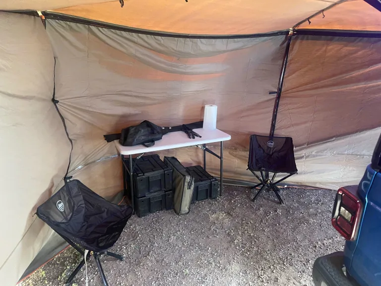 Close up the awning. Creating a private area wherever the roads take you.