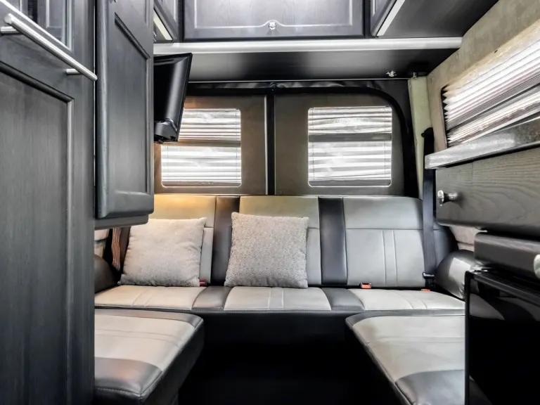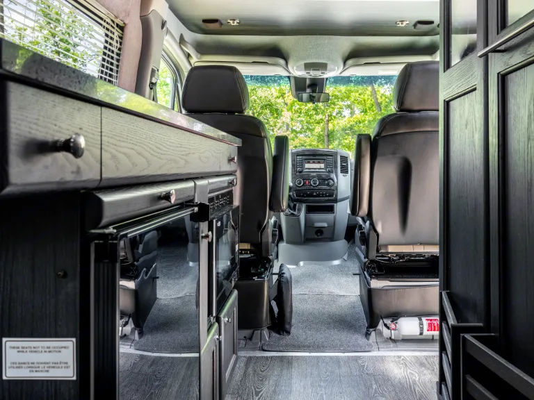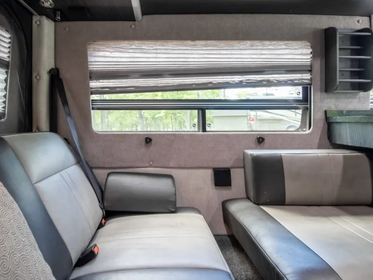 The bed in the back is very cozy and comfortably sleeps 2 grown adults or 3 children. The driver and passenger seats in the front can be turned around and transformed into an extra twin bed adorned with the appropriate mattress pad/pallet. (See mattress pad Add-on section to select, if interested.)