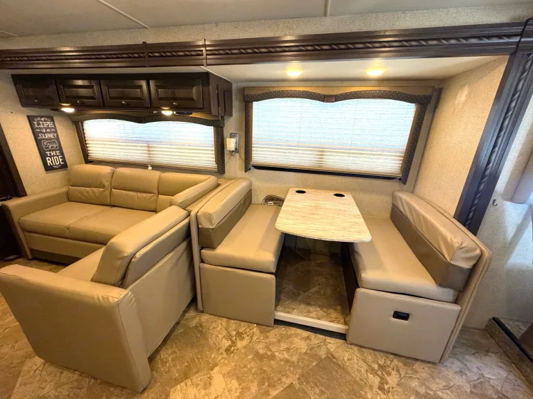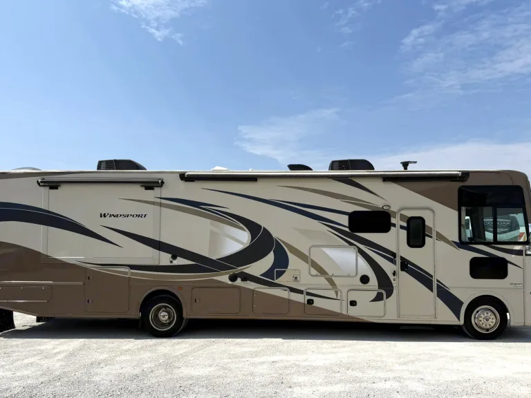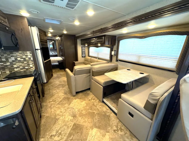 2017 Thor Windsport 35M Calss A motorhome with tons of space. Sleeps 8, overhead front bunk that lets down for 2, dinette conversion sleeps 2 small kids, L shaped sofa fold bed sleeps 2, and master king bed in back. Half bath mid bath and full rear bath. Outside TV, living area TV, and bedroom. Auto leveling jack for easy set up. 2 AC's, propane furnace, Comes with everything you need in the kitchen and all sewer and utility connections.What's included???