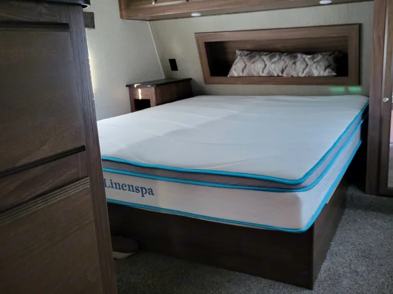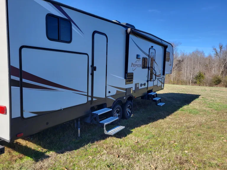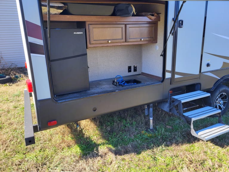 5th wheel with bunkhouse, outdoor sink and fridge/prep area and 1.5 bathrooms. Bunkhouse sleeps 3, dining table lays down and is perfect for 1 adult or 2 kids. The couch lays down to sleep 2 adults. The queen bed upstairs has been replaced with a memory foam mattress. Plenty of storage for all of your adventures!! What's includedFresh linens and 4 camping chairs included, as well as pots, pans, utensils and coffee maker. 32 in TV in unit as well RecommendationsArkansas is jam packed with beautiful places to see. Greers Ferry and Lake Catherine are personal favorites! Other things to notePets will need to be discussed prior to agreement. No smoking.