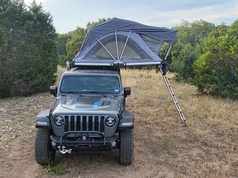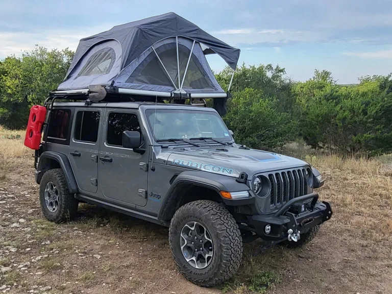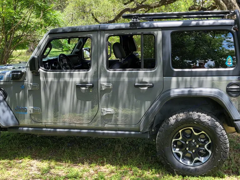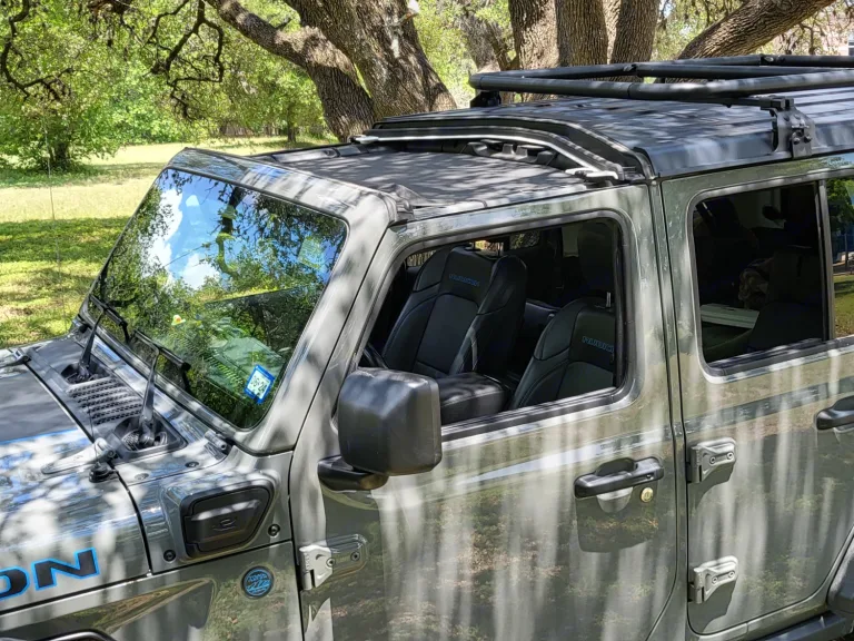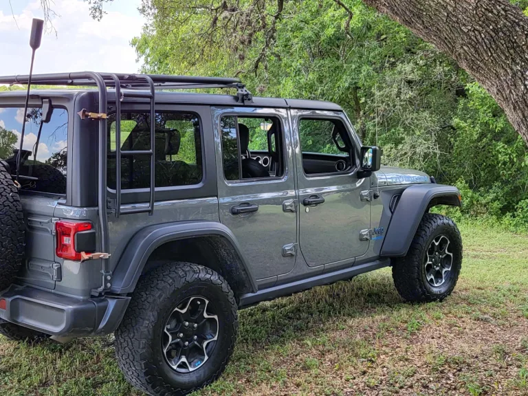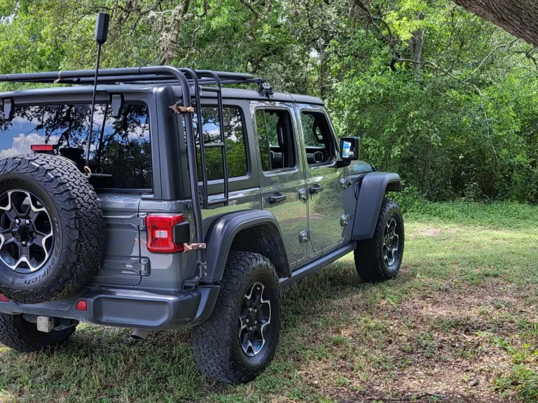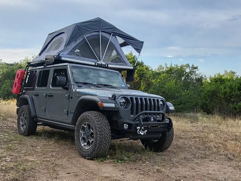 This is Gonzo, my 2022 Jeep Wrangler Rubicon 4XE. He makes a fun and fuel-efficient around-town vehicle or I can fully kit him out for overland camping trips if you want to do that.Gonzo's a Phev (Plug-in hybrid) you can drive around town quietly and without using any gas if you choose. In hybrid mode (like a Prius) you can expect about 27mpg (gas) in the city and about 18-21 on long road trips with mostly highway miles at 65mph. If you rent the tent, you'll be on the lower end of that. Heading to Big Bend NP there are 80 mph speed zones and if you do 80 mph with the tent, you can expect 14-15mpg. Compare that efficiency to ANY other real overland/off-road vehicle - jeep, 4runners, etc.Gonzo does not have giant tires or a lift because he's not meant for rock crawling (or looking like he does). Stock 33" BFG AT tires, a Gmrs radio, a cellular booster, and a front winch and bumper are the basics for overlanding in the backcountry and that's what you get here - unless you want the full kit. Gonzo's a legit Wrangler Rubicon with really good fuel efficiency. Gas-only Wrangler Rubicons are 12-15mpg all the time.What's includedI can fully kit you out with my 60" Free Spirit Recreation RTT. This is a top-of-line 3-season insulated rooftop tent with interior LED lighting, 10-gallon water system with pump and refill hose, an extra 5-gallon gas tank, Trasharoo, rear cargo basket, traction boards, camp stove, dishes, lightweight tarp-awning, table & two chairs, towels, sleeping bags, and a small yeti-like cooler. Basically, everything you need to go overland camping.