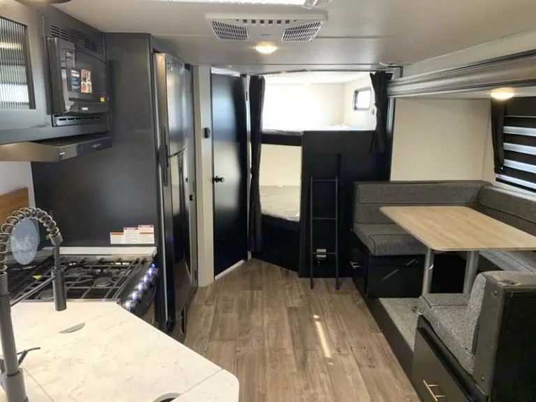 Stereo system built inside and outside with speakers in ceilingThis trailer is perfect for your ultimate road trip.What's includedGrey Wolf is a brand new travel trailer sleeps 9 comfortable RecommendationsN/aOther things to noteN/a