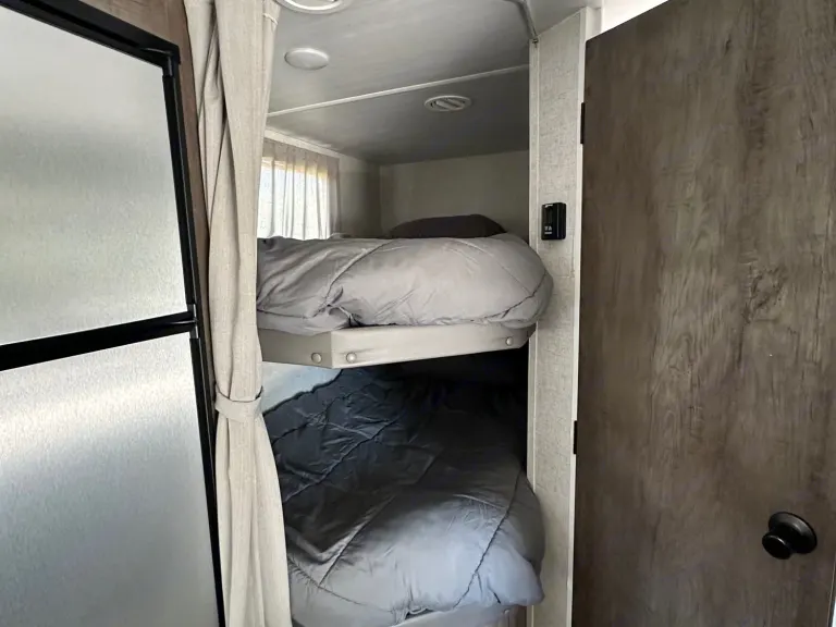 Cozy trailer perfect for a family outdoor adventure. It has everything you need to go camping . A second home outside your house. What's includedTrailer comes ready with, two propane gas tanks, camping chairs and tables included. It also has an outdoor kitchen with build in griddle. Keurig coffee machine included . RecommendationsEnjoy camping on the beach, mountains and lakes.Other things to noteNo smoking . No pets.