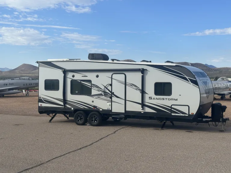 Requirements: Valid driver's license and insurance required.Don't miss out on the opportunity to experience the freedom of the open road in our Forest River Sandstorm RV. Book your adventure today!What's includedFresh Linens: Experience the comfort of clean and cozy bedding. We provide fresh linens for all sleeping areas, ensuring a restful night's sleep under the stars. or you can provide your own just ask for more detailsFully Stocked Kitchen: Forget the stress of packing kitchen essentials. Our RV comes complete with pots, pans, utensils, and dinnerware, allowing you to whip up delicious meals with ease.Camping Chairs: Relax and unwind outside with our complimentary camping chairs. Whether you're gathered around the campfire or enjoying a scenic view, these chairs provide the perfect spot to kick back and enjoy the outdoors.Basic Cleaning Supplies: We understand the importance of a tidy space. Our RV includes basic cleaning supplies, making it easy to keep your home-on-wheels in tip-top shape throughout your trip.RV-Friendly Toilet Paper: No need to worry about finding the right toilet paper for your RV. We provide RV-friendly toilet paper for your convenience.Starter Kit: Upon arrival, you'll find a starter kit with essential items such as toiletries, paper towels, and trash bags, so you can start your adventure without a trip to the store.RecommendationsPlan Your Route: