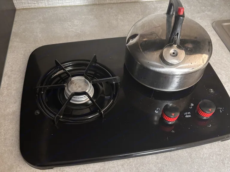 This 2022 clamshell trailer is perfect for a weekend getaway or a longer escape.It's got it all, indoor/outdoor shower and indoor toilet. Fridge, stove, microwave, heater and air conditioner. Comfy queen bed and a dinette that folds down that can sleep one adult or two kids.Pets are welcome. Due to size of camper, one dog is perfect. Be sure to keep trailer clean if bringing your dog. Please try to keep dog off bed and seats.Exterior length 18 ft. . Perfect for SUV's or trucks with 3500-5000lb towing capacity. Only weighs 2240 lbs dry. Cargo carrying capacity 840. Total weight 3,080. Fresh water capacity is 24 gallons, grey water is 18 gallons, black water capacity is 17lbs. Please empty all grey and black water prior to returning. Towing vehicle requires 7 pin plug for trailer hook up when towing.Delivery and set up options availablePlease no smokingWhat's includedIncluded is 24hr roadside assistance, trailer hitch if needed (please note when booking), Brake Control, camp table, kettle, dual batteries for extra life when not hooked up to power, fully filled 20lb propane tank, microwave, fresh water hose, electrical connector, sewer hose, plus all towing related items, TV/DVD combo with remote, Bluetooth capacity for internal speakers, spare tire, compostable toilet paper, 50ft electrical cableRecommendationsThis trailer is equipped with high end oversized, all terrain wheels, so perfect for off the beaten path camping.Not all features work off battery, microwave, AC/Heater, plugs for any appliances you may bring will only work on electrical sites.
