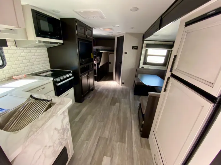 Fun for the whole family. Outdoor kitchen which includes mini fridge, griddle, and small bbq for an added fee. Upgraded battery bank gives you a few days off the grid. Lots of storage underneath. 30 amp power hook ups with central heat and a/c. We have taken the trailer on 2 week trips with no issues and several days of dry camping are possible with monitoring your water and holding tanks. The bottom rear bunk folds up so you can store tables, chairs, or bikes. We have a portable generator that we can rent out for an extra fee which will give you several extra days of power with no hooks ups. Please bring your own sleeping bags, blankets, linens, and pillows.What's includedFresh linens, cookware, utensilsOther things to notePlease no pets, no festivals and no smoking
