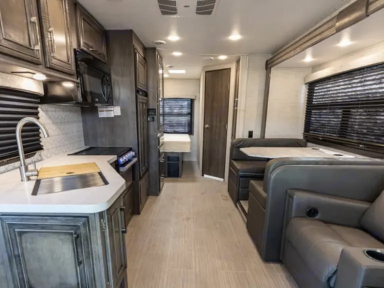 Beautiful new class C, Entegra Odyssey motorhome. Sleeps 6, large king over cab, dinette conversion, and Queen in back room. 2 recliner chairs. Beautiful kitchen. Fully loaded with all amenities for your camping needs. Pet Friendly.What's includedAll kitchen necessities, cooking necessities, linens for 4, towels, RV TP.