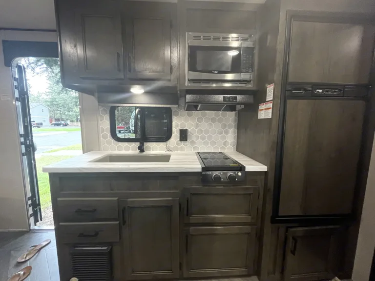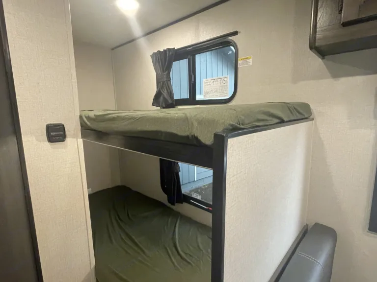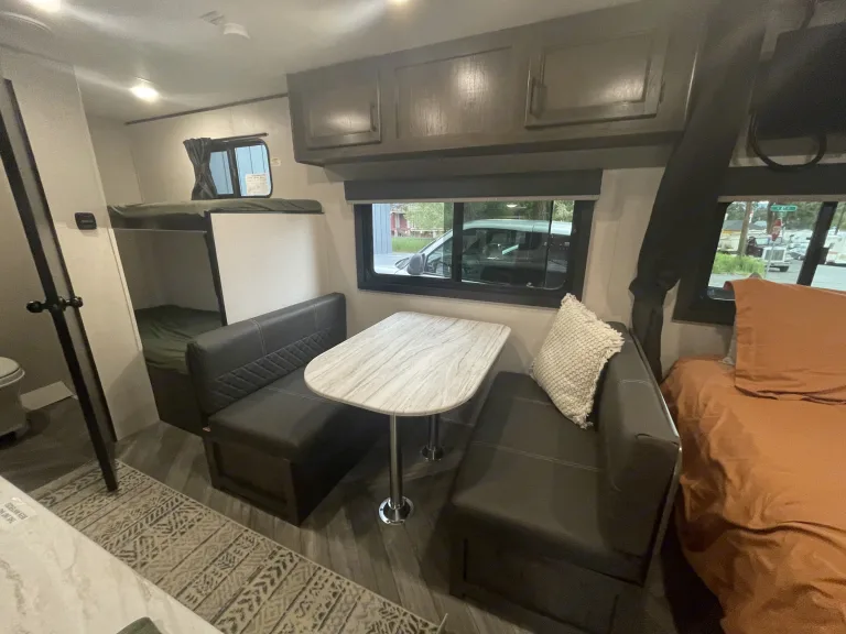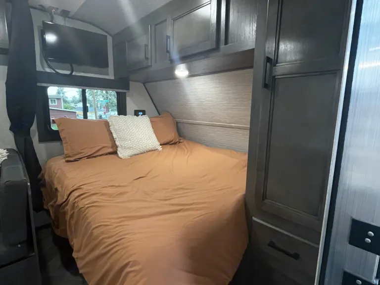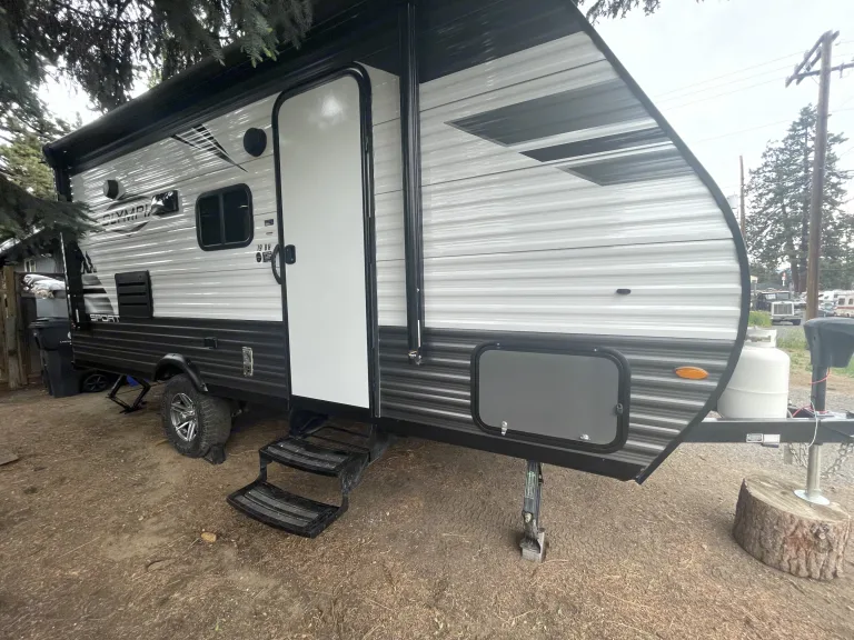 Our trailer is cute and modern with all the necessities for the perfect family trip! We’ve got a spacious queen bed with a curtain for privacy. Nice big fridge and freezer and a heater that works very well! Lots of storage underneath the beds as well for any camp equipment you wanna bring. Comes with surround sounds speakers inside and out as well as LED lights on the awning. The solar power means you’ll always be charging so it’s a great trailer for longer trips and you don’t need a hookup for most features. It’s also an all season trailer so you have more time in the year to camp! Willing to drop off depending on the distance!What's includedWe have camp chairs, camp table, sheets and blankets on all the beds, all kinds of kitchen utensils, and some cleaning supplies including all things needed to dump the black/grey water. We have a generator we can provide as well and we’re happy to have your dog join you!RecommendationsThere are so many great places to see right here in the center of Oregon! We love going to lakes such as Cultus and Billy Chinook! There’s also beautiful spots just outside of Sisters at Suttle lake and Metolius River. And of course up towards Mt. Bachelor are so many fun camping areas. Other things to noteThe only pets we allow are dogs and we request they not get up on any of the beds and especially not on the dinette.Absolutely no smoking in or around trailer.Extra cleaning/repair fees will be charged if anything happens to the trailer or major messes are left behind.Please no festivals or tailgating.Dump trailer before bringing it back.