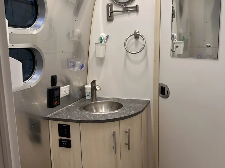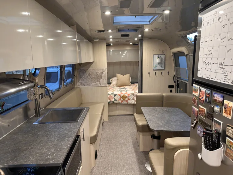 Airstream Bunkhouse. Pulls like a dream. Perfect for 4 adults or a family of 5 or 6 depending on age of kids. Our kids are 10/8/5 and no bed conversion is necessary. 2 sleep on the bottom full size bed and 1 sleeps on the top bunk.Main bedroom is at the front and has a queen bed.