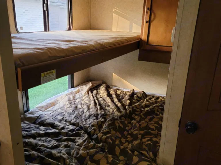 24ft long with plenty of beds to sleep, featuring 3 beds and a bunk bed. Fully stocked kitchen. The refrigerator, furnace and AC work wonderfully.The shower is nice and hot and the water heats up pretty quickly. It holds 60 gallons of fresh water, with 30 grey and 34 black tank capacity.Pulls real smooth and feels light. Sway bars keep it nice and straight on the open road. Solar panel on top to keep the battery fresh.What's includedCan pick up or deliver within 100 miles for a delivery fee and fuel fee.Comes equipped with:
