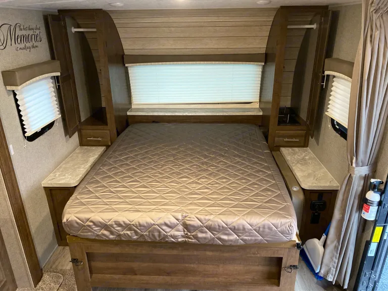 Not too big, not too small 2021 Microlite 21DS. Easily half-ton towable at 22'4" and 4,800lbs. Comes with weight distribution hitch and rear view camera upon request for safe transportation. Store-away queen-size murphy bed and big powered slide makes for an open floor plan with excellent seating space. The U shaped dinette makes for a great card game area and converts into a full-size bed. This camper is ideal for one couple or a maximum of 4 adults. Connect your phone to the bluetooth stereo, relax and enjoy the view under the large powered awning. Equipped with 6 volt batteries for extended dry camping, and a generator for an added fee ($20 a day). If you enjoy later season camping, our trailer is equipped with heated and sealed tanks for late season use. We do our best to accommodate everyone and give them the best possible camping experience though our customer service and camping supplies. In return, we ask renters to please do your best to take care of our camper so it can go on many more adventures. Please see add-on section to optimize your camping experience.I have attached a link to a full video tutorial walking you through the proper operation of our trailer from hooking up, to generator operation, and filling/dumping the tanks. Please review these videos before pick up.Link-https://www.youtube.com/playlist?list=Plpr82fWek9ofvo4I1cTwCDs__GQLdBNU4