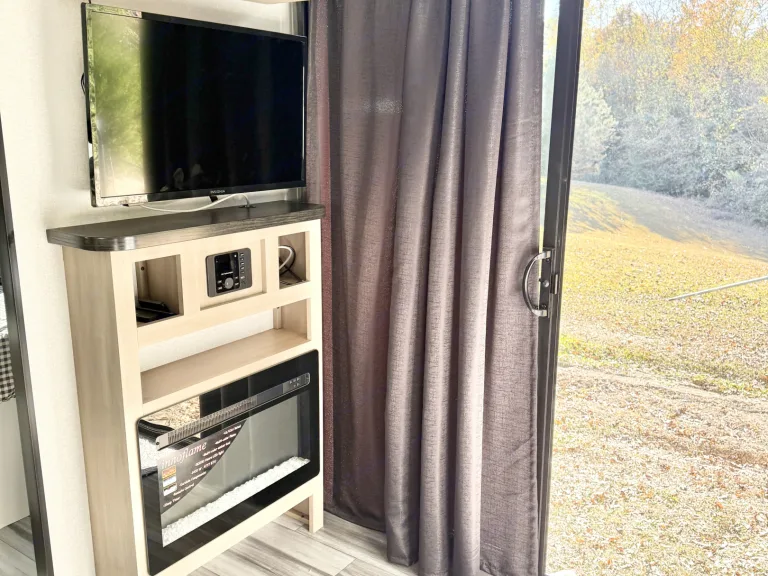 Welcome to this Brand NEW 2026 Jayco! Spread out and get comfortable in this luxurious 2 Bedroom camper with tons of space! Relax with 1 King size bed, 1 Queen size bed, sofa bed, and dinette bed conversion. This camper features 3 ceiling Hvac units, an electric fireplace, and a tankless hot water heater, meaning hot showers for the whole family! Unwind with the indoor/outdoor Bluetooth speakers and LED lights under the large outdoor awning, as well as an ambience light on the front of the camper.