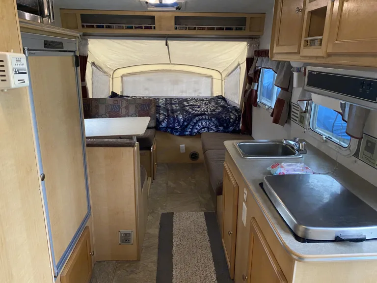Lightweight trailer that sleeps 6. You can pick it up and take to your location or we can tow it for you and set it up, whichever works for you!There is a double bed on one end and a queen on the other. There is a also a dining table that can be converted to more sleeping space if needed - about the size of a single bed. Plenty of storage above the beds and in various compartments throughout the trailer. There is a good size fridge with a freezer, sink, tabletop stove and microwave. There is also a bathroom with a shower. Please empty greywater if used.If you have any other questions about the trailer please do not hesitate to reach out.The trailer has been kept in great condition.Happy camping!Included with the rental: