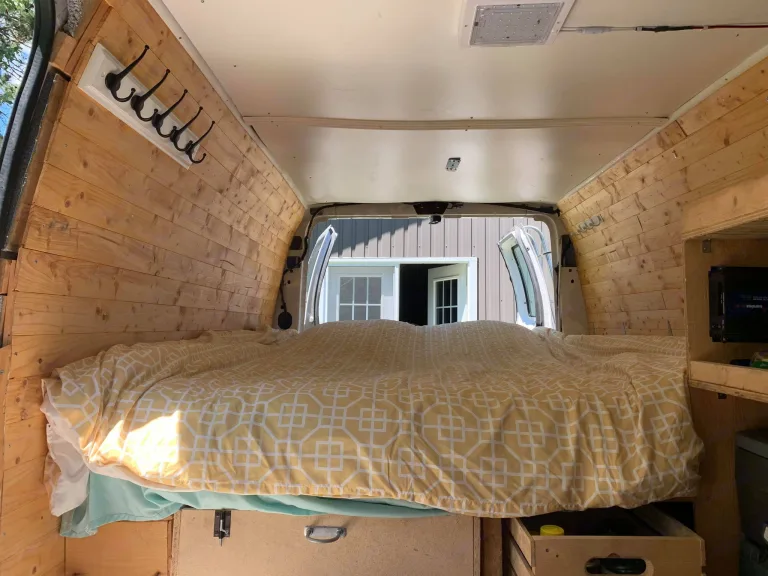 Confortable - Grand - PratiqueProfitez au maximum de vos vacances en vous offrant confort et tranquilité d'esprit. Le van est récent et toujours bien entrenu. C'est la version allongée, donc beaucoup d'espace pour pouvoir en profiter beau temps mauvais temps.Il y a :- Un lit double avec tout le nécessaire; drap, grosse couverte pour les temps froids, oreillers, rideau, et couvre-fenêtre.- Un four de camping au propane avec 2 ronds.. Il n'est pas fixe donc vous pouvez autant cuisiner à l'intérieur qu'à l'extérieur.- Vous avez tout le nécessaire pour cuisiner (un chaudron, une poêle, une louche, une spatule, sel, poivre, huile, et tasse, verre, assiette, ustensile). Il y un bac pour faire la vaisselle, avec savon, éponge et linge.- Une glacière qui se branche dans l'allume cigarette.- Il y a 2 bidons d'eau de 20 litres qui vous permette de facilement remplir vos bouteilles d'eau et être autonome pour quelques jours.- Un panneau solaire pour recharger vos cellulaires ou brancher votre ordinateur et écouter des films.- Un rack sur le toit pour pouvoir transporter votre kayak.- Des espace de rangement sous le lit pour mettre vos bagages.- Deux chaises de camping, une table, et je peux également vous fournir un auvent si nécessaire.- Un toilette portative.Au plaisir de faire partie de vos vacances ! N'hésitez pas si vous avez des questions, à bientôt :)