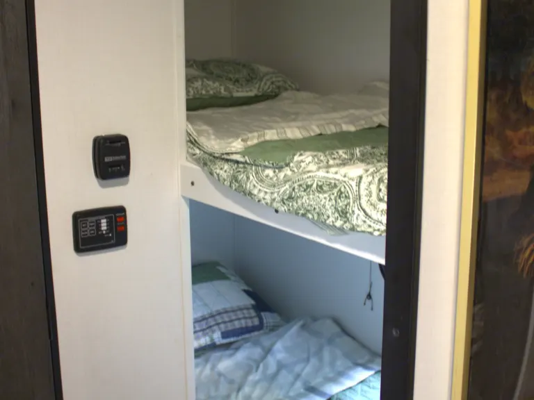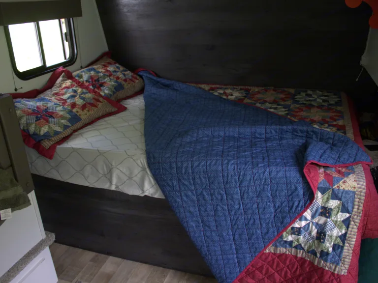 • Check above slide-out and queen bed position BEFORE pulling in.