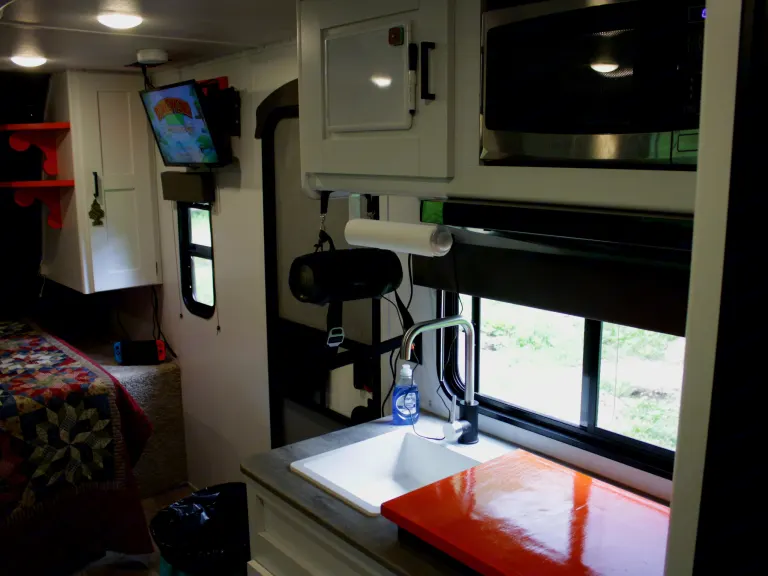 Other things to noteIf you are staying at a campsite without electric hook-up: outlets, TV, AC, LED lights and microwave will NOT work. We are in the process of getting converters installed.