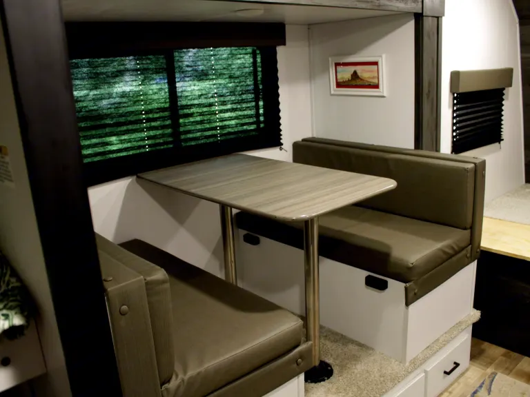 Ready to hit the road? So is the Keystone Hideout 176BH. Sleeps 5 comfortably - Queen size bed, bunk beds (250lb max.), and dinette bed. You'll have solar power to recharge the battery, propane tank (water heater & burners) bathroom with sink and shower, fridge/freezer (electric if plugged in and propane if needed), 2 stove burner, kitchen sink, Roku TV with easy console hook-up (no cords needed), LEDs inside, 1 slide out to give you extra room inside and an awning with lights. Plenty of storage - 20"x12" outside front access, lockable trunk under queen bed, with long gun mount and closet with hangers.