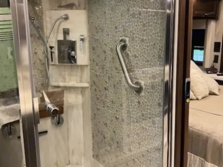 Please take extra care when going to the beach with the sand. There is an outdoor shower on the side of the RV to rinse your feet off before you come back inside.