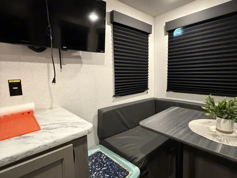 • Convertible dinette – transforms into an extra bed for 1–2 small humans or 1 adult who likes cozy spaces