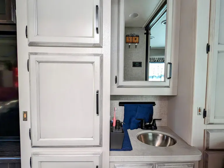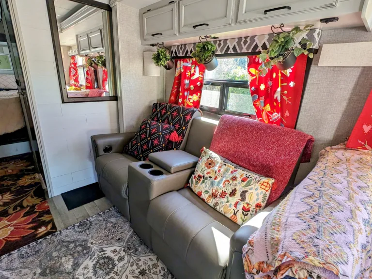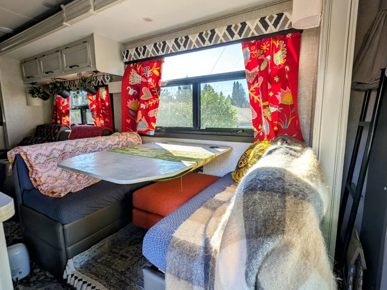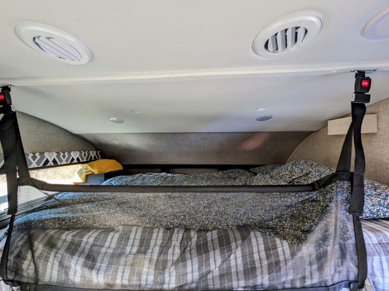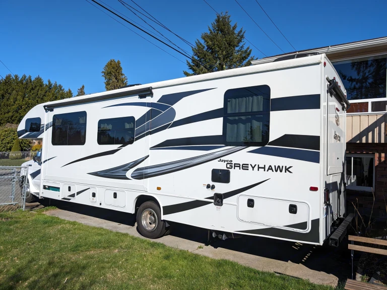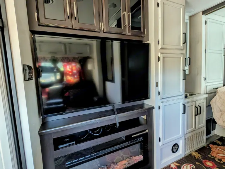 This 32ft RV features 2 theater seats with a fireplace and swing-out, flat screen TV in the main room and a 32in flat screen in the master bedroom that includes access to Netflix, Amazon Prime Video, Peacock, and basic cable. In addition to a master bedroom and over-cab sleeping bunk, the dinette converts into a bed. The over-cab bunk has a safety mesh to protect sleepers. RV is equipped with AC & heater, water heater, propane generator, solar panels, 2 slide outs, outdoor lights, and indoor/outdoor sounds system. Flat screen navigation panel make trips easy!Just 15 minutes from SeaTac.What's included• Fresh bedding and linens
