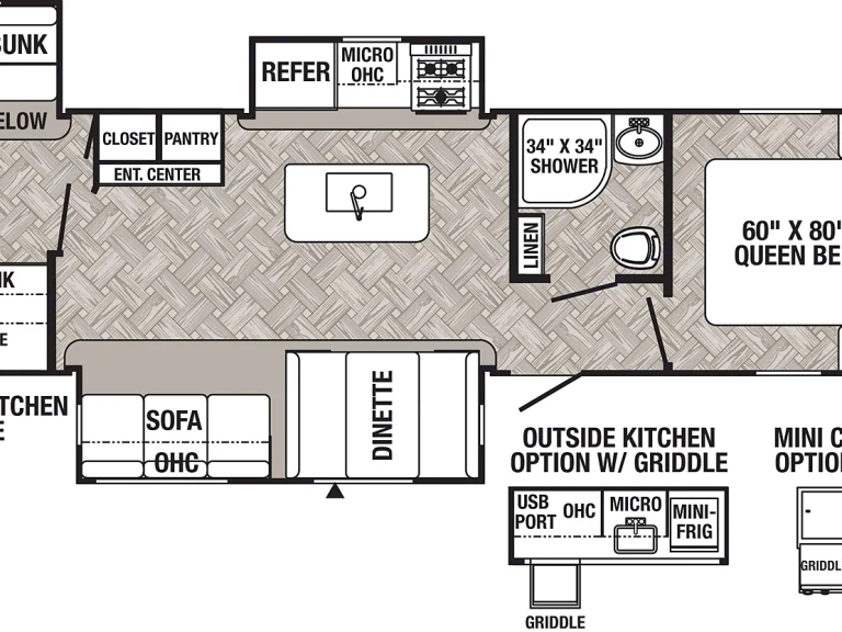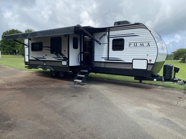 Pounce on an adventure in our Palomino Puma 32 bunkhouse model travel trailer! The Puma 32bhks provides the perfect accommodations for any size family. The split floor plan with rear bunkhouse allows for privacy/separation while the great living and kitchen areas naturally bring everyone together. This unit comes fully stocked with not only all the camping essentials but also tons of extras. If you can think it, it has it. It is even equipped with a large outdoor kitchen featuring a griddle cooktop, huge fridge, sink etc. This unit is a 2021 and shows no wear, its like new! We take great pride in offering a clean, disinfected, well kept and well maintained camper. Go enjoy the outdoors and make memories that last a lifetime in our Palomino Puma!What's includedLinens (1 per bed)