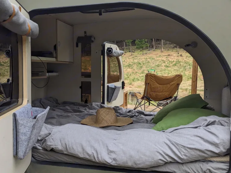 Droplet is a modern, bright and lightweight teardrop trailer. Take your master bedroom camping!