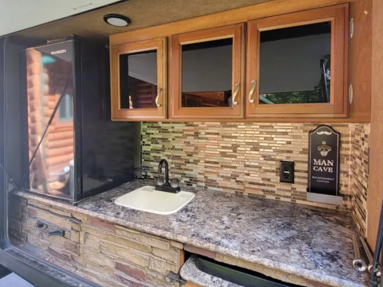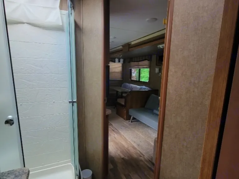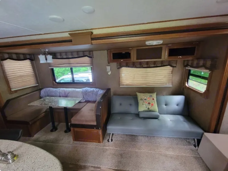 All you need to do is make your own reservation and we will deliver and set up. Then we will pick up when it's time for your stay to end.**Currently we are only excepting Thursday evening through Sunday mornings.We have a few rentals booked with our trailer now so make sure you get yours in quickly. Our trailer is equipped to sleep at least 10 people.Our outdoor kitchen is beautiful and will give you extra kitchen space. Plus outdoor shower as well as indoor shower will allow your little ones to wash away sand or dirt from playing outside all day.Our awning gives you a relaxing environment under shade after a fun day outside.**In most cases it will be delivered and set up by 9pm the day rental has started. Pickup will be always be between 10/11 the day the rental is to be returned. Thank you for understanding. Again, I will do my best to make sure I can accommodate your needs with our trailer. Thank you and message if you have any questions.**Please read FAQ for information regarding campsite.What's includedOur trailer will come with sheets, pillows, towels, washcloths. We have a DVD player in living room with lots of movies for you to enjoy. We have a few camping chairs along with an outside rug. There are dishes and utensils as well as grilling equipment. Our stove, oven, and microwave all work inside however the outside one is not connected. Our fridge inside and outside works great however when it's really hot out it takes a little bit for our inside fridge to get cold. Please just give it some time and do not mess with knobs in fridge for when you do it messes it up more. RecommendationsIt is your responsibility to find out if there is water at your campsite. If asked to fill water tanks it will require an extra fee.