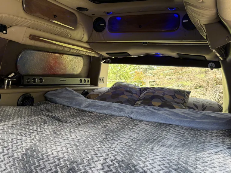 - Built-in TV & premium sound system, perfect for movie nights or road trip playlists