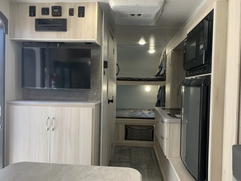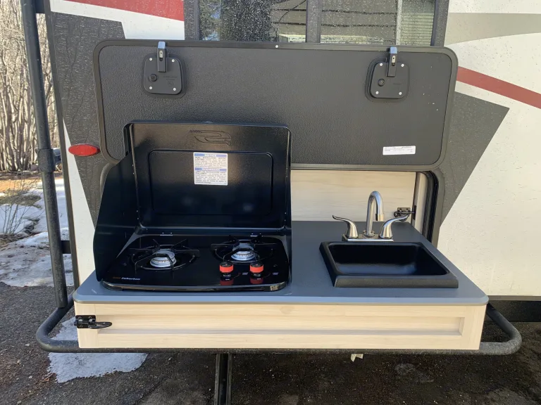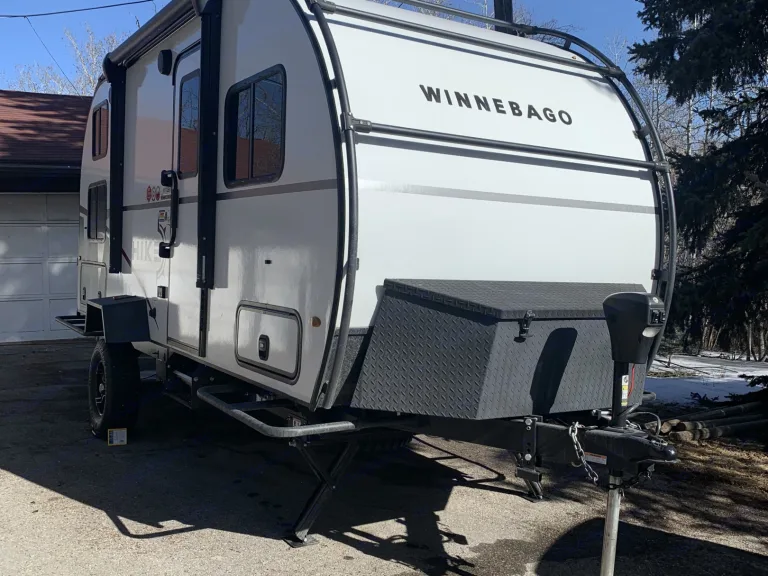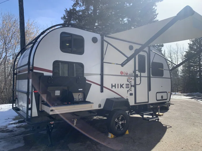 2022 Winnebago Hike trailer. This trailer offers 3+ seasons of camping with off-road capabilities. Find a spot down a back road on crown land and avoid the crowds in the campgrounds. There’s a hitch receiver off the back, so add your bicycle rack and bring the bikes along. Enjoy the outdoor kitchen with a gas cooktop and sink, and rinse the day off at the outdoor shower. Solar panels trickle charge the batteries, which allow for a week of power off-grid.Dry weight is 3400lbs, loaded weight is 4200lbs, and the tongue weight is 640lbs. It is NOT SUV friendly with the heavier hitch weight. Be sure to check your vehicle is rated for the tongue weight as well as the towing capacity, as these are different ratings from one another. Having off-road capabilities, it is also a tall unit at 11’ from the ground.Due to a full work schedule, I’m only able to accommodate rentals of 2+ nights with a pickup/drop off window of 6:00-7:00PM.What's includedLinens, kitchen dishes, utensils, pots, etc, towels, camping chairs.Other things to noteThis unit has a heavy hitch and is not SUV friendly. Please check your vehicle ratings.