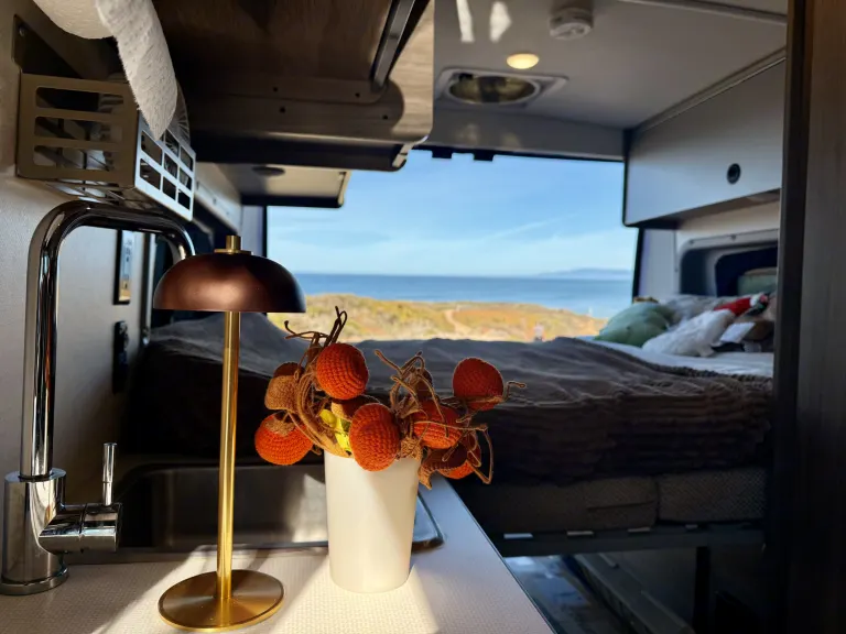 This isn't just a campervan rental; it was a five-star experience on wheels. From the moment I stepped inside, I was struck by how pristinely clean the van was. It was stocked with a full kitchen featuring all-new pots, plates, utensils, and the nicest non-stick pans —nothing stuck while cooking! Between the ample space, the very comfortable and easy-to-use pop-up bed, and the handy onboard bathroom, I truly felt like I was living in luxury. All the necessities were provided, including a battery pack, sheets, blankets, soap, and paper towels, plus the zipper covers for the windows were fantastic for privacy.