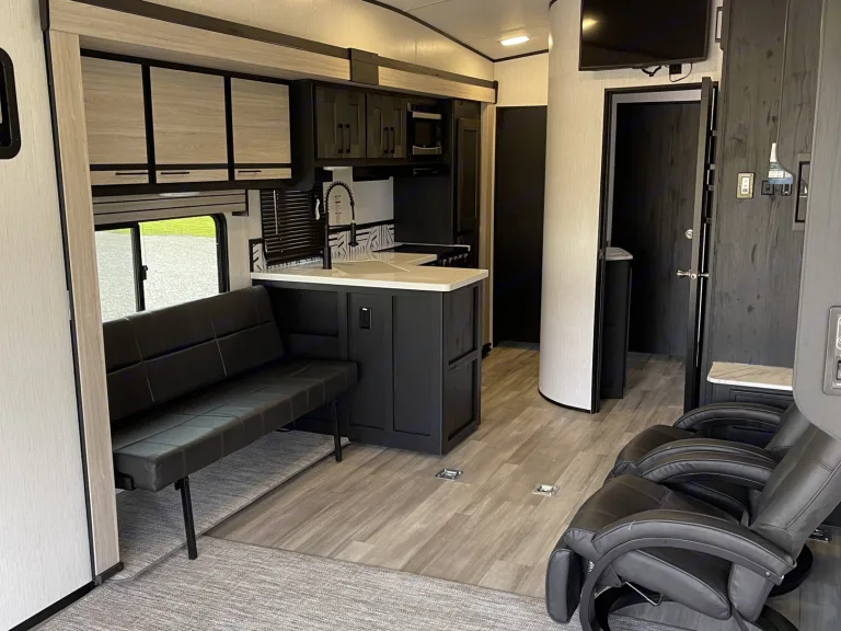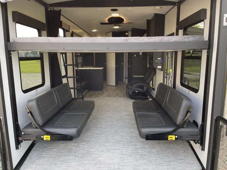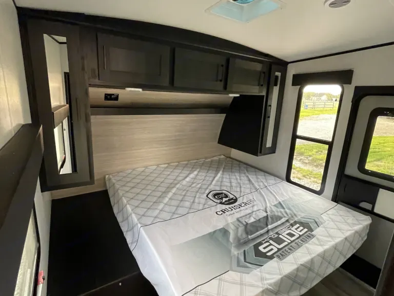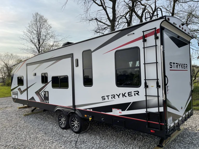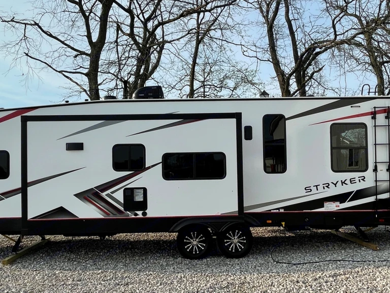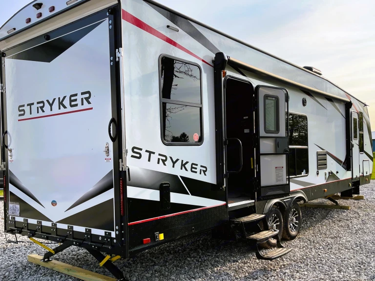 Stryker is a 2022 Unit stocked with all the amenities for an adventure. This amazing floor plan is ideal for large families with an awesome loft bed for the kids!This unit has a massive 14' slide out paired with a beautiful kitchenet and solid surface countertops. King Master Suite with private entrance door and access to the full bathroom and kitchen. It also includes an area for your pets to sleep without being on the bed or under your feet.