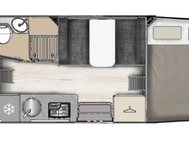 Ideal for groups, this RV features four double beds for 8 happy travelers.