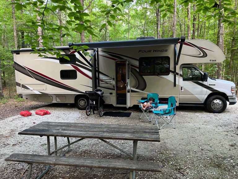 Our family just purchased the motorhome in 2022.  Heather and I have a son, Oliver that is 4, and a 3 month old son, Asher, along with our 2 dogs Kobe and Freddie.  Chris has a boat tour company in Mackinaw City and Heather is a nurse at the hospital in Petoskey.  We purchased the motorhome so after the summer season we could take a family trip every year.  Since we are so busy in the summer we wanted to share the motorhome with visitors to the area so they can enjoy Northern Michigan and the wonderful camping opportunities all around us.