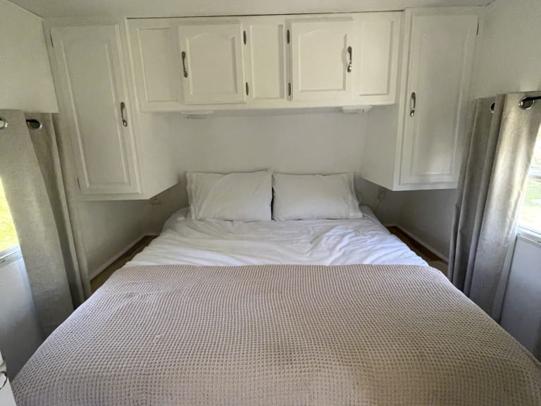 The camper is older but very updated, so it looks nice. We arrived late, but everything was set up and ready for us. They provided many amenities for us, everyday use stuff like toilet paper, paper towels and Kleenex, plus all the dishes and things we would need for everyday use. It was really hot and the breaker kept flipping the air off, but it was an easy fix and they were very accommodating to us to try and fix the problem. We enjoyed our stay a lot.