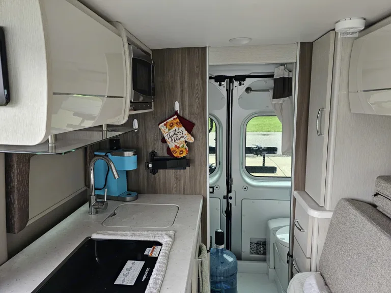New Thor Rize 18 M 5,000 miles. Emagine being able to enjoy camping anywhere with the ability to park In an average parking spot making taking an errand to get supplies a breeze. This unit is in brand new condition has electric Awning with wind sensor just incase you forget to bring it in during high winds. Has super quiet generator incase you need to sleep with it on. The unit has wet bath with water and sewer hook up. The unit has solar back up continually maintain house batteries. The unit has refrigerator, keurig coffe maker , microwave kitchen and bath sinks , bike rack and more it's the perfect get away vehicle. What's includedEverything to operate the rv will be in the rv. Must bring your own linens and blankets. RecommendationsRelax and enjoy your camping 🏕 experience. Other things to noteNo smoking or pets inside rig , rig should be returned swept clean and debris and personal items removed.