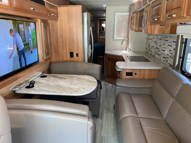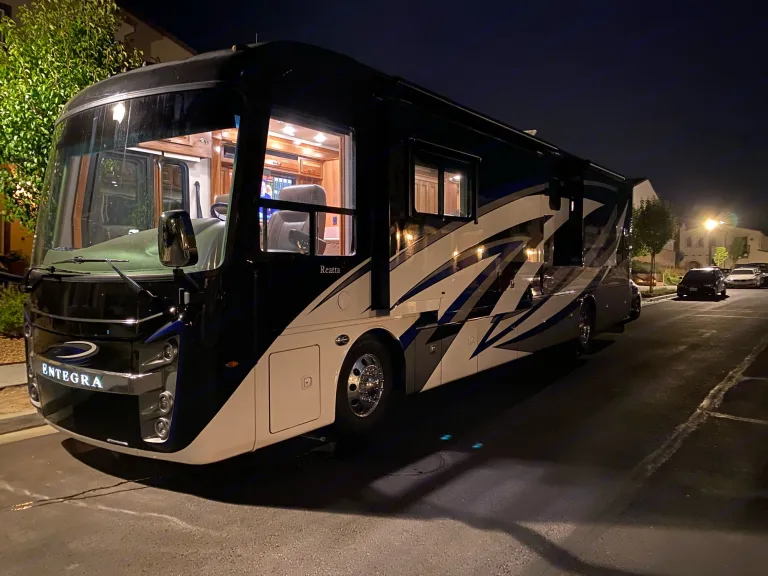 2019 Entegra Reatta 39 BH diesel class A motorhome. Almost new!!! Sleeps 8. 39’11” in length. 1 1/2 baths with 3 slides. Has 3 tv’s private bedroom with en-suite bath. Bunk beds, satellite radio, navigation, electric induction cooktop, washer dryer and many more features. Pure Luxury!! Just under 40ft so does not require class B license in California