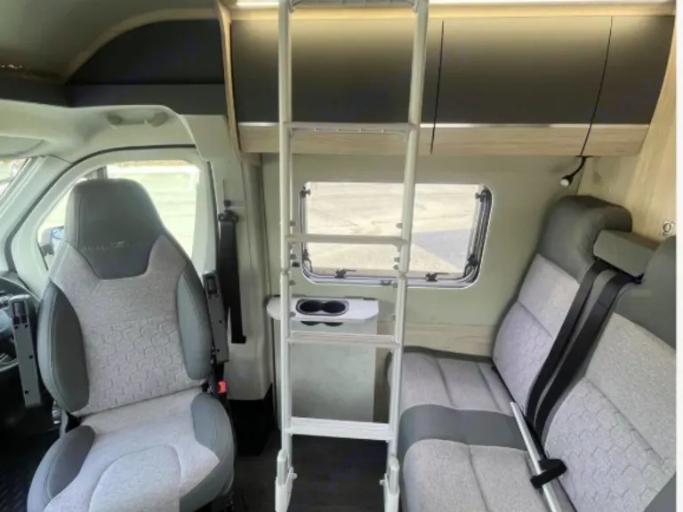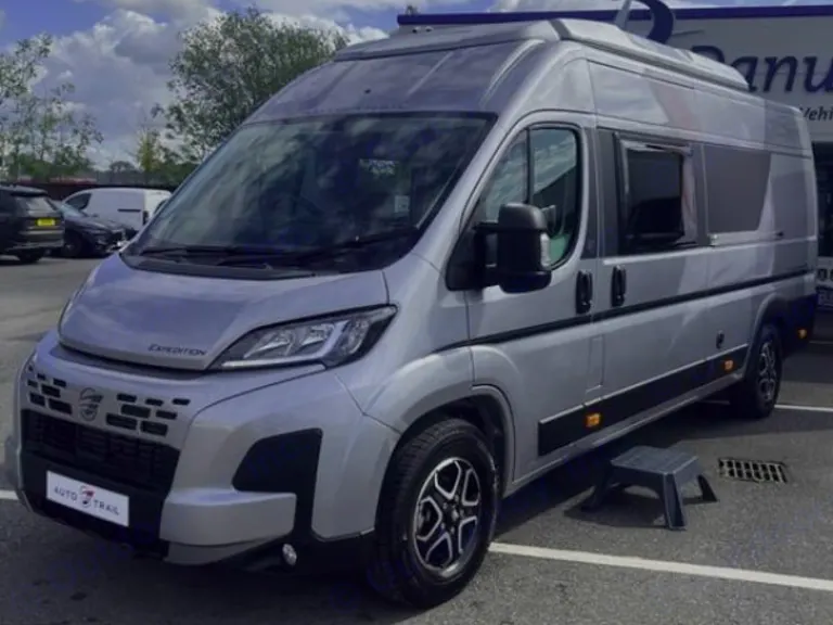 Our Expedition Campervans are based upon the latest Fiat Ducato with Automatic gearbox. The Auto Trail Expedition 68 with elevating roof can sleep up to 4 people. The layout consists of a living area towards the front whilst the compact shower and toilet are opposite the kitchen area toward the middle, leaving the rear for an elevated bed can accommodate people up to 6ft with ease. The permanently elevated bed provides for a huge garage. The garage can easily accommodate up to 4 bikes with front wheels removed and still have space for additional storage. The elevating roof with dedicated ladder provides the second double bed.