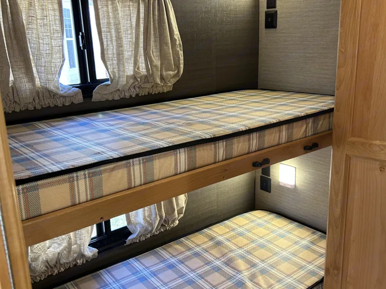 You won't believe how much style and class comes with this Allegro RED Class A diesel motorhome! From the rear master suite to the four flat-panel TVs, this coach is decked out with modern and accommodating amenities. The bunk beds will catch your attention because they will allow you to offer some extra sleeping space to any friends or family that want to join you on the road, yet they don't take up much space. The kitchen is also going to be a favorite of yours with its expand-an-island, residential refrigerator, convection microwave, and double-bowl sink. The main living area is spacious and includes an optional fireplace.