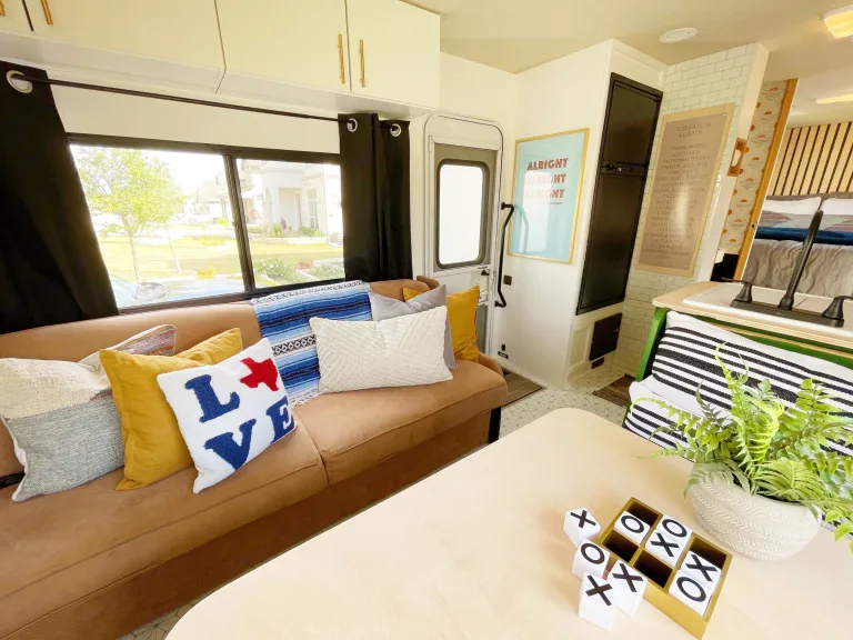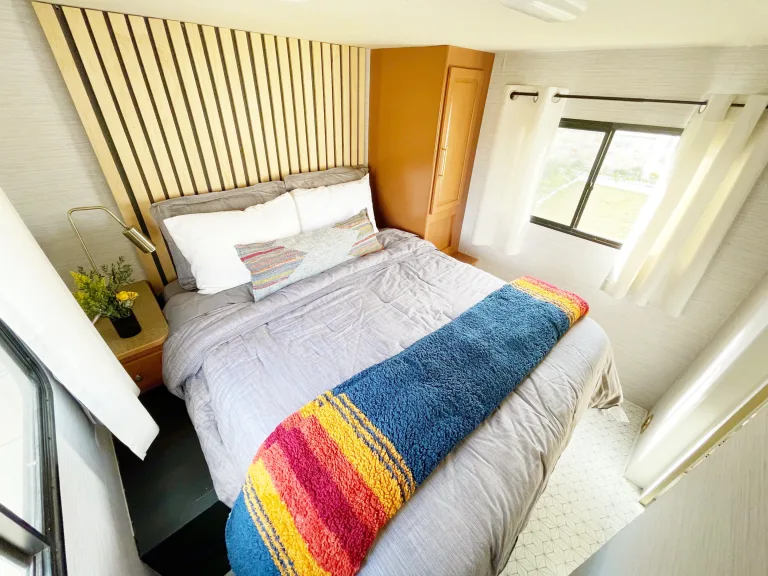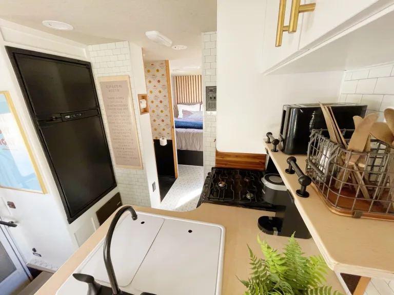 With plenty of room for your family, or a couples’ road trip, Ladybird is a great jump-off point to explore in whatever direction you’re going! Having a distinct vibe, you won’t find the “cookie cutter” feel of being in a typical RV. Instead you’ll feel like you’re staying in a boutique hotel. Ladybird lets you play and live outdoors in style.What's includedStep into your Boutique Hotel Room on the go. It comes with linens for the queen bed, towels for bathing, kitchen items for light cooking and serving, Keurig K-cup coffee maker, the kitchen has a stove and an oven.DEPARTURE AND RETURN AVAILABILITY: We try our best to avoid departures and returns on Sunday and will not do pick ups or drop-offs ON or one day BEFORE the following holidays (but you may schedule your rental period over these holidays if they are available): New Year's Eve, New Year's Day, Valentine's Day, Independence Day, Halloween, Thanksgiving Day, Christmas Eve, Christmas Day.SEASONAL/EVENT PRICING: We increase our nightly rate during high demand times. This includes major holidays and special event, such as Formula 1.FUEL AND RETURNS: The RV must be returned with a full tank of gas along with the other items our RV Return Checklist, provided in handbook. Please return the RV with a full tank of gas and empty waste water tanks including gray and black or there will be and additional $125 disposal fee.INSURANCE CLAIMS: Any damage to the RV resulting in an insurance claim will also constitute a forfeiture of the entire security deposit to compensate for lost revenue while the RV is in for repairs and to compensate us for the additional time and travel expenses to deal with the damage.PETS: Maximum of 2 small-medium sized dogs only and no cats (got bad allergies in the family). Make sure to select the pet cleaning service from the add-ons if you have any dogs you are bringing. We are very meticulous with cleaning up pet hair and if we find pet hair after a trip when no pet was disclosed we will deduct the pet hair cleaning service from the deposit. So just be honest if you bring a pet, we have a dog hair blanket we include and launder for free, we accommodate pets but require a fee for the additional work it takes to get all the hair.LATE RETURNS: If the RV must be returned no later than 4pm. We need the daylight to photograph the outside and submit any damage reports. Returns later than 4pm may result in a $100 late fee.SPEEDING: Please follow all traffic laws for the roads you are traveling. The sweet spot for fuel efficiency is no greater than 75mph.SMOKING: Smoking inside is strictly prohibited and will result in the forfeiture of the entire security deposit.ROOF: There’s nothing up there to worry about so don't get on the roof (not even if you are Santa)TOLLS: Renter is responsible for all tolls incurred during the rental. As some tolls can take several weeks to arrive, we reserve the right to charge for tolls up to 6 months past the rental period if needed.RecommendationsAustin is full of rivers, lakes and state parks. Take a day trip or travel down to the coast. Visit national parks or head cross country to beaches, mountains, or cities.