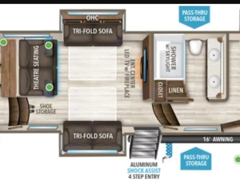 Very spacious fifth wheel camper. Tons of storage space, 2 recliners that are heated and massage. It also has 2 roof air conditioners. One in the master bed and other located in living area. 50 amp is required as hook up. Please message me on messenger Mike Manzello for delivery cost as prices change as gas prices fluctuate. Discounts are available for traveling workers with bookings over 2 weeks.What's includedItems that are provided with RV: