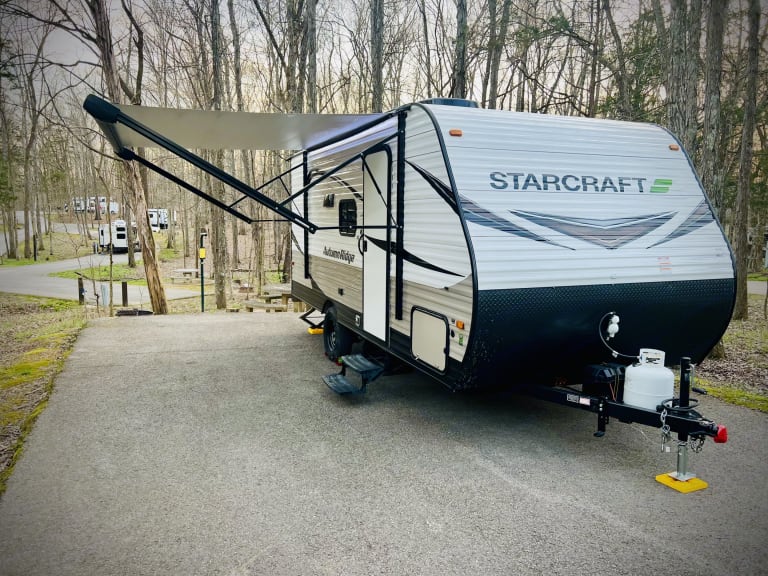 *Delivery Preferred*This 2021 Starcraft Autumn Ridge Travel Trailer is our family camper, and we ask that you take care of it properly so our family is able to go on adventures for years to come! It sleeps up to 5 with 1 queen bed with a privacy curtain, 2 bunks, and a sofa that can convert to a bed.Our camper includes all necessary bed and bath linens. However, you will need to provide pillows if you plan to use the dinette as a bed. We have tried to provide a fully stocked camper to make your camping experience more enjoyable!Delivery price includes us setting up the camper, leveling it, hooking up the water and electric and sewer if there are full hook ups. It also includes us emptying the tanks when your rental is complete. *Free delivery to Henry Horton State Park*We do not rent our camper for festivals, shows, or other events. Absolutely no pets, parties, smoking or vaping in our camper. Your deposit will be forfeited if these rules are broken.What's includedHere is a compiled list of what is provided:Bathroom: